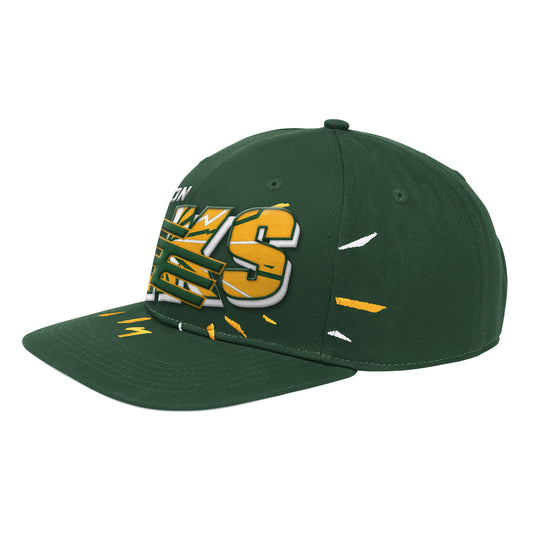 Fits nice. Champion brand logo close to left sleeve cuff. Subtle way to show my EE luv. Will be my go to on none game days.